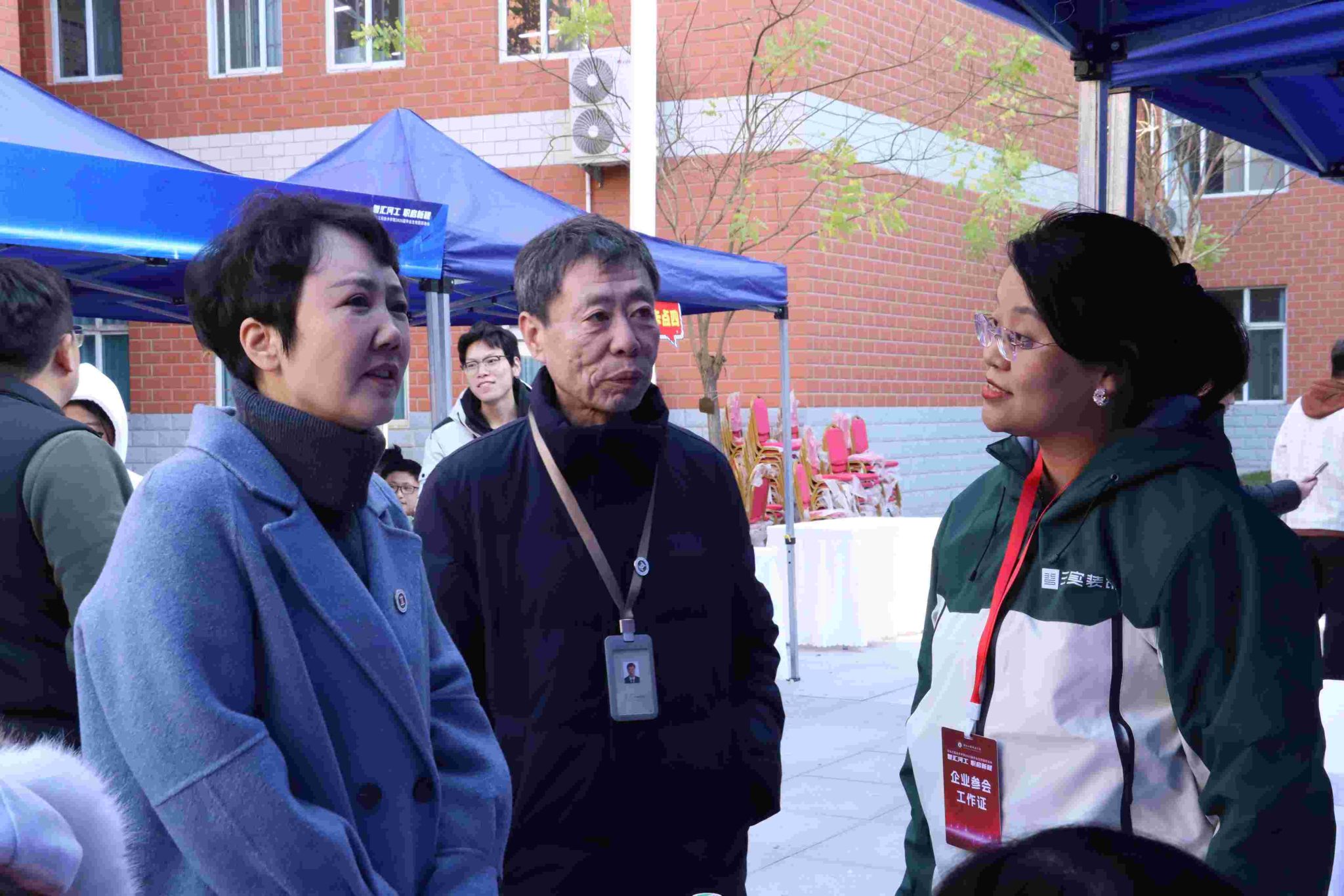 招聘会期间,副校长郝爱青莅临指导,现场与用人单位代表及毕业生进行深入交流,并对学院就业工作提出明确要求。她强调,学院要继续深化就业指导服务,引导毕业生树立正确就业观念,鼓励企业为青年人才提供发展平台。为深化校企合作,副校长郝爱青为北京链家置地房地产经纪有限公司、中盛弘宇建设科技有限公司等10家企业代表授予"大学生就业实践实习基地"牌匾。企业代表表示将持续加强与学院的合作,共同推进就业实践实习基地建设。