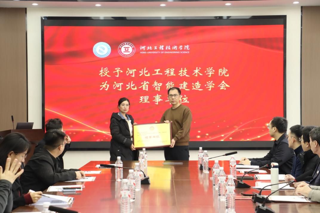 会上举行河北省智能建造学会授聘仪式,河北工程技术学院被授予学会理事单位,张隆老师受聘为副秘书长,杜慧慧老师受聘为理事,标志着学院深度融入区域智能建造行业生态。